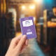 Tarjeta De Identificación Badge de paso en el salón de la biblioteca púrpura
