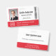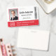 Personalice fácilmente esta insignia de nombre y foto de empleado roja personalizada con su propio logotipo de empresa y código qr o código de barras. Disponible con diferentes colores de fondo y accesorios. Sin cantidad mínima de pedido.