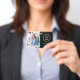 Insignia moderna, minimalista, elegante, de identificación de empleado negro. Puedes añadir tu logotipo, foto y detalles.