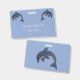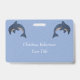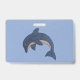 Esta insignia del nombre o de la identificación es azul clara con dos delfínes purpurinoso en azul marino y blanco en una posición de salto respecto al frente y a un delfín más grande en la parte posterior. Modifique su nombre e información para requisitos particulares con las plantillas.