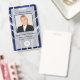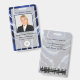 Este diseño artístico único y moderno presenta un estilo martillero azul índigo azul marino oscuro y blanco shibori geode batik tilo color acuarela que recuerda a agate, mármol o olas oceánicas. En el centro de la parte delantera hay una foto y un texto de los empleados del personalizable junto con una foto del empleado del personalizable, una imagen del logo y un texto para su nombre de negocio, el nombre, título y número de identificación del empleado, en un overlay parcialmente transparente que permite mostrar el patrón de mármol. En la parte posterior hay más texto de personalizable y un código de barras de personalizable que se puede reemplazar por el suyo, encima de un sutil juego de tintes de corbata de mármol. Puede personalizar este elemento cambiando la foto del empleado, la imagen del logotipo, la imagen del código de barras y el texto de la plantilla del producto.