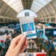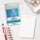 Una insignia de identificación de negocio para empresas que incluye una foto personal, el logotipo de la empresa y el nombre de la empresa.