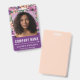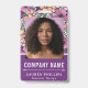 Insignia floral colorida de empleado con un patrón de flores en morado, rosa y melocotón. Llamando la atención la vibrante placa de identificación de negocios con muchas flores en hermosos tonos morado y melocotón personalizada con tu foto, nombre, nombre de la compañía y título. La placa de foto floral de moda con flores en tonos melocotón y púrpura y rosa y tu nombre y título contra un fondo morado debajo de una foto de identificación de ti. Vaya a sus clientes con esta preciosa y única placa de identificación floral con ilustraciones de flores rosas, flores moradas y flores color melocotón en un diseño moderno y femenino.