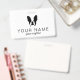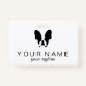 Plantilla de distintivo de nombre ideal para el cuidado del perro, la caminata del perro, la sentada del perro, los servicios de fotógrafos mascotas. El diseño moderno muestra la cabeza de bulldog francesa y su nombre.