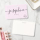Tarjeta De Identificación Business logo Custom script name pink staff