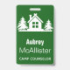 ¡Haz que tus empleados sean felices campistas con estas insignias de estilo minimalista! Árboles modernos de color verde y blanco con placa de nombre personalizada con motivos de camarote. Ideal para los consejeros del campamento, y club de actividades al aire libre, o dueños de salidas al exterior.