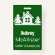 Tarjeta De Identificación Cabina y árboles rústicos | Consejero del campamen