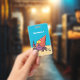 Este feliz personalizado de cangrejo ermitaño es un naranja violeta brillante y colorido con un fondo azul. ¡Llévame al mar!