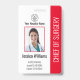 Personalice fácilmente esta placa de identificación de foto de empleado de hospital profesional roja con sus datos personalizados.