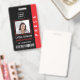 Crea una impresión audaz y profesional con esta moderna credencial de prensa con un diseño elegante en negro y rojo. Diseñada para fotoperiodistas, reporteros, profesionales de los medios y personal de prensa de eventos, esta tarjeta de identificación personalizable combina tipografía limpia con una estética editorial fuerte.
