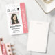 Personalice fácilmente esta identificación profesional de empleado de estilo moderno rosa con sus datos personalizados.