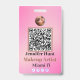 Este diseño presenta un estilo de letra de caligrafía con firma elegante sobre un hermoso fondo de color púrpura lila iridiscente moderno. Perfecto para un salón de belleza, estilista de cabello, artista de maquillaje, técnico de uñas, técnico de pestañas o cosmetólogo.