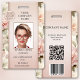 Chica femenina profesional badge de identificación con tu foto personalizada y logotipo en un fondo floral rosa. En la parte posterior puedes agregar un código de barras personalizado y código QR y textos adicionales o eliminar las plantillas.