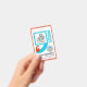 Un diseño de comillas de colores vivos encapsulado por un borde rojo en las llantas exteriores de la tarjeta.