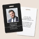 Cree un aspecto profesional con esta placa de identificación de estilo clásico. Un diseño sencillo, combinado con una tipografía elegante y tradicional, impresa en blanco y negro. La foto, el nombre, el negocio y la profesión de su personalizado están en la parte delantera y la información de contacto está en la parte trasera. Todo el texto se puede personalizar o eliminar para que pueda incluir la información que desee.