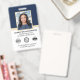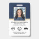 Da una impresión profesional con este diseño clásico de identificación. Personalice fácilmente con su foto de identificación, nombre, cargo, nombre de la empresa y código QR. Se proporciona espacio para su logotipo y dos símbolos de acreditación. Todo el texto se puede personalizar para adaptarlo a sus necesidades de negocio. Colores impresos: azul marino muy oscuro, blanco y dorado.