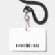 Nombre Badge con forma de corazón, foto, código de barras y logo. personalizar fácilmente esta placa a tu marca.