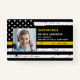 Identifíquese fácilmente a usted y a su distribuidor en la estación con esta fina línea dorada personalizado foto personalizada, logotipo, código de barras, tarjetas de identificación 911 de expedidor. Personaliza con foto de distribuidor, nombre, número de identificación y departamento de policía o departamento de bomberos. Personalizar la parte posterior con el logotipo y código de barras del distribuidor o del departamento, o cualquier otra información. Esta delgada tarjeta de identificación de despachador de línea dorada es perfecta para los 911 despachadores, despachadores de policía, departamentos de policía y departamentos de bomberos. DERECHOS RESERVADOS © 2020 Judy Burrows, Black Dog Art - Todos los derechos reservados. Código de barras fotográficas de Personalizado Dispatcher