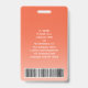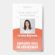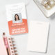 Representar su negocio con estilo, suministrando al personal tarjetas de identificación modernas y profesionales. El logotipo, la foto, el código de barras y todos los textos de esta plantilla son sencillos para el personalizar. El diseño en blanco y naranja presenta un fondo de gradiente oscuro con un arco curvo elegante, el logotipo de su empresa, una imagen cuadrada, el nombre y el título del empleado y el código de barras UPC en la parte posterior. Puede proporcionar organización y seguridad al personal de la empresa, al tiempo que presenta la marca corporativa con un elegante aspecto clásico.