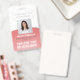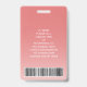 Represente su negocio con estilo proporcionando al personal con identificaciones modernas y profesionales. El logotipo, la foto, el código de barras y todo el texto de esta plantilla son fáciles de personalizar. El diseño rosa y blanco presenta un fondo degradado ombre con un arco curvo elegante, el logotipo de su empresa, una imagen cuadrada, el nombre y el título del empleado, y un código UPC / código de barras en la parte posterior. Puede proporcionar organización y seguridad al personal de la empresa, al tiempo que presenta la marca corporativa con una apariencia clásica y elegante.