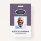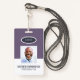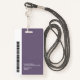 Una moderna y sencilla insignia que no distrae de los detalles importantes. Fácil de leer desde lejos. Agregue un logotipo personalizado y detalles de la empresa. Agregue el nombre, la foto y el título profesional del empleado. La barra de color se puede modificar para que coincida con los colores oficiales de la empresa. En la parte posterior, agregue más información, como la dirección de devolución y el número de identificación del empleado. Perfecto para logos ovalados.