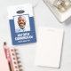 Una moderna y sencilla insignia que no distrae de los detalles importantes. Fácil de leer desde lejos. Agregue un logotipo personalizado y detalles de la empresa. Agregue el nombre, la foto y el título profesional del empleado. La barra de color se puede modificar para que coincida con los colores oficiales de la empresa. En la parte posterior, agregue más información, como la dirección de devolución y el número de identificación del empleado. Perfecto para logos ovalados.