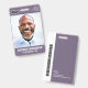 Una moderna y sencilla insignia que no distrae de los detalles importantes. Fácil de leer desde lejos. Agregue un logotipo personalizado y detalles de la empresa. Agregue el nombre, la foto y el título profesional del empleado. La barra de color se puede modificar para que coincida con los colores oficiales de la empresa. En la parte posterior, agregue más información, como la dirección de devolución y el número de identificación del empleado. Perfecto para logos ovalados.