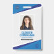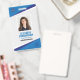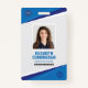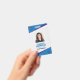 Una insignia moderna y sencilla que no distrae a la gente de los detalles. Fácil de leer de lejos. Añadir un logotipo personalizado y detalles de la empresa. Agregue el nombre, la foto y el título profesional del empleado. En la parte posterior, agregue más información, como la dirección de devolución y el número de identificación del empleado.