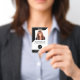 Este moderno diseño de distintivos de nombres se puede personalizar con su nombre de negocio, logotipo y detalles de contacto, así como una foto de empleado y código de barras.