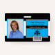 Foto de enfermera registrada. Agregue su foto, nombre, ubicación comercial y código de digitalización a este identificador de RN. Insignia azul y negra de las enfermeras.