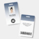 Personalice fácilmente este Personalizado distintivo de nombre de seguridad de empleado corporativo con foto, código de barra de exploración o código Qr y logotipo comercial con un degradado blanco oscuro en color de fondo. Un sencillo diseño de negocios en tonos azul claro y blanco con un overlay de ombrè, personalizable completo en frontales y traseros, sans-serif básico y moderno y un aspecto profesional, elegante y claro. Las insignias están disponibles con patio, clip metalizado o retráctil. Sin orden mínima.