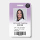 Una identificación de foto de enfermera ombre lavanda púrpura pastel moderna y profesional con logo y código de barras.