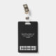 Personalice fácilmente estas insignias de nombre de negocio sin foto, con el código Qr legible (¡siempre funciona!) y el código de barras y el logotipo de grandes empresas. Este fabricante de id de empresa tiene un diseño sencillo de etiquetas de nombre de negocio en colores blancos y negros totales, personalizable completo en tamaño frontal y trasero, sans-serif básico y moderno y un aspecto profesional y claro, perfecto para empleados de pequeñas empresas, jefe, invitados. Estos suministros de tarjetas de identificación de negocios están disponibles con patio, clip metalizado o retráctil. Disfrute del excelente servicio de impresión de tarjetas Zazzle! No hay un pedido mínimo, y cuanto más compre, más ahorrará. Los descuentos masivos están disponibles con múltiples pedidos, para diferentes empleados también!