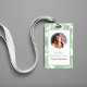 Este diseño presenta una insignia de foto de empleado, perfecto para cualquier negocio profesional, con hojas de palma botánicas y un código de barras QR, con nombre y título. Es perfecto para empresas modernas, minoristas o corporativas, excelentes suministros de oficina y también ideales para ferias comerciales y convenciones