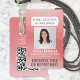 Represente su negocio con estilo proporcionando a su personal con insignias de identificación fotográficas modernas y profesionales. El logotipo, la foto, el código QR y todo el texto de esta plantilla son fáciles de personalizar. Para crear su propio código QR utilizando el generador, simplemente escriba la URL del sitio web en la plantilla. El diseño también cuenta con un fondo degradado ombre rosa con arcos curvos únicos, el logotipo de su empresa, una imagen cuadrada y el nombre y cargo del empleado. Es adecuado como herramienta de marketing promocional o como pase de acceso para un evento, como una conferencia, concierto, festival o fiesta vip. Puede proporcionar organización y seguridad para el personal de la empresa, al tiempo que presenta la marca corporativa con una apariencia elegante y clásica.