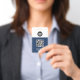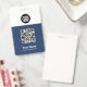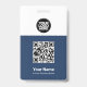 Personalice fácilmente este distintivo de nombre de empleado Personalizado con código Qr, código de barra de exploración y logotipo de empresa. Un sencillo diseño de negocio en colores azul marino y blanco personalizable completamente en tamaño frontal y posterior, sans-serif fuentes básicas y modernas y un aspecto profesional y claro. Disponible con patio, clip metalizado o retráctil. Sin orden mínima.