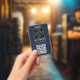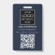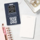 Una moderna insignia minimalista personalizada de negocios con el logotipo de negocios y el código QR. Personalice con su logotipo, código QR y detalles para crear su propia y elegante placa comercial en blanco y azul. Personalizar aún más con un fondo de color personalizado o una fuente.