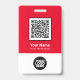Personalice fácilmente esta Tarjeta de Identificación de Empleado Personalizada con o sin Foto, Código Qr, Escanear Código de Barras y logotipo comercial. Un diseño empresarial simple en colores rojo y blanco totalmente personalizable en tamaños delanteros y traseros, fuentes básicas sans-serif y modernas y un aspecto profesional y claro. Disponible con cordón, clip metálico o retráctil. Sin pedido mínimo.