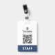 Personalice fácilmente estas credenciales empresariales sin foto, con código Qr legible (¡siempre funciona!) y código de barras y logotipo empresarial grande. Este creador de identificaciones empresariales tiene un diseño simple de etiqueta de nombre comercial en colores azul marino y blanco totalmente personalizable en tamaños delanteros y traseros, fuentes básicas y modernas sans-serif y una apariencia profesional y clara, perfecto para empleados de pequeñas empresas, jefes, invitados. Estos suministros de identificaciones empresariales están disponibles con cordón, clip de metal o retráctil. ¡Disfrute del excelente servicio de impresión de credenciales de Zazzle! Sin pedido mínimo, y cuanto más compre, más ahorra. Los descuentos al por mayor están disponibles con pedidos múltiples, ¡también para diferentes empleados!