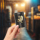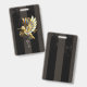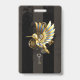 Steampunk, colibrí antiguo, dorado, mecánico con engranajes de latón y llave de plata sobre fondo marrón y rayas. Ave dorada.