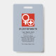 Una cubierta blanca se acentúa con una columna roja (con una capa azul claro subyacente) cerca de la base de la placa ; Esta columna azul claro contiene una plantilla fotográfica para un tamaño de foto de 1.000 x 1.200 fotos. Justo al lado de la foto están tu prestigioso nombre, cargo e identificación de empleado. En la parte superior de la insignia hay un logotipo opcional de asistencia sanitaria roja, seguido del nombre de la organización y el contacto por correo electrónico.