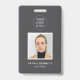 Esta sencilla tarjeta vertical de identificación de empleado gris presenta una tipografía moderna y un diseño sencillo. Personalízalo con tu foto, logotipo, nombre, cargo y texto personalizado.
