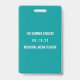 Perfecto para conciertos de verano, festivales musicales y grandes eventos, esta insignia de personalizable cuenta con un fondo de siluetas blancas de palmeras con fondo verde tropical, con sobremesas de textos en blanco y coral. Personalizar para VIP, personal, prensa u otros usos, con cuatro líneas de texto al frente. Añada información adicional de eventos a la parte posterior de la placa con letras blancas en color turquesa.