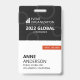 Una insignia moderna para eventos de conferencias de negocios. El diseño muestra el nombre de la organización que ejecuta el evento y el nombre de los eventos en la mitad superior. La mitad inferior de la insignia muestra el nombre, el negocio y la función de evento de la persona que asiste al evento. Esta insignia de evento de negocios es ideal para seminarios, foros anuales, reuniones globales, conferencias o ferias.