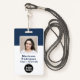 Blue Corporate Logo Photo Barcode Custom Employee ID in Navy Blue and White. Enhance workplace security and identification with this custom employee ID badge, designed for both function and style. Featuring a clean blue and white background, this badge includes space for your company logo, employee photo, name, and title—making it easy to identify team members at a glance.
