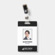 Una tarjeta de identificación empresarial moderna que incluye la foto, nombre y ocupación de un miembro del personal. La identificación del empleado corporativo también incluye el nombre y logotipo de la empresa. El color de cualquier elemento de diseño de esta tarjeta de identificación se puede personalizar.