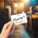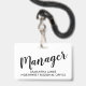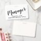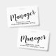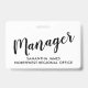 Una simple y elegante identificación para gerentes modernos con un título de tipografía script y su nombre y el nombre de la empresa o región. Simple, moderno, elegante. Para personal de gestión para reuniones, eventos y convenciones.