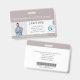 Personalice estas credenciales horizontales para personal médico con una foto y nombre del empleado, junto con múltiples campos de texto personalizados para el nombre del hospital o centro de salud, abreviatura del título, información de la unidad o piso, número de identificación del empleado, o fecha de validez, junto con el logotipo del centro médico.