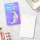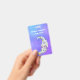 Esta placa de nombre o identificación tiene una luna creciente blanca de fantasía con una cara y decoraciones abstractas coloridas en azul, amarillo y púrpura sobre un fondo de cielo púrpura brumoso con estrellas blancas punteadas. La parte posterior tiene el mismo fondo de cielo púrpura. Personaliza tu nombre e información con las plantillas.