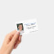 Credencial de empleado blanca personalizada, con ranura para foto en la parte frontal izquierda. Personalice todos los campos de texto con la información que requiera y reemplace la imagen con la suya.
